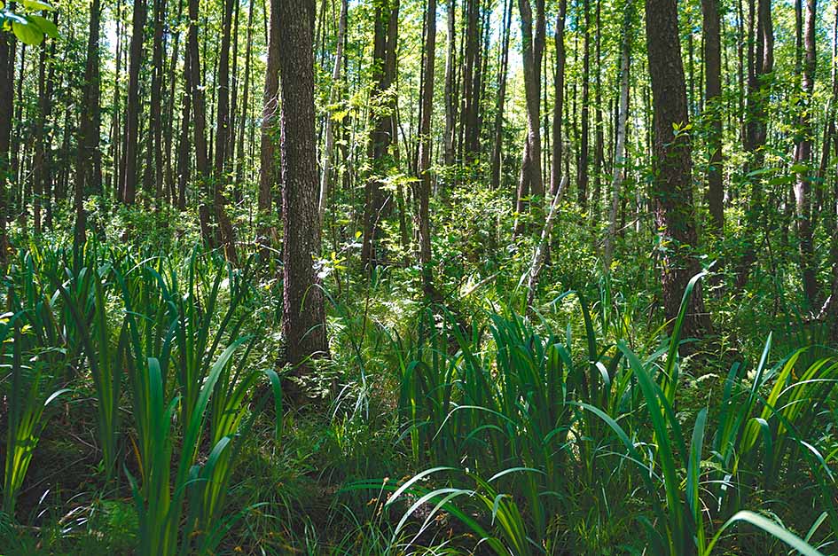 чорнаальховыя і пушыстабярозавыя лясы на залішне ўвільготненых глебах і нізінных балотах: карэнныя драбналістыя лясы ўзростам старэйшыя за 70 гадоў на перагнойна-глеевых, тарфяна-глеевых, рознай магутнасці тарфяных глебах на ўчастках са слабым дрэнажом і застойным увільгатненнем;