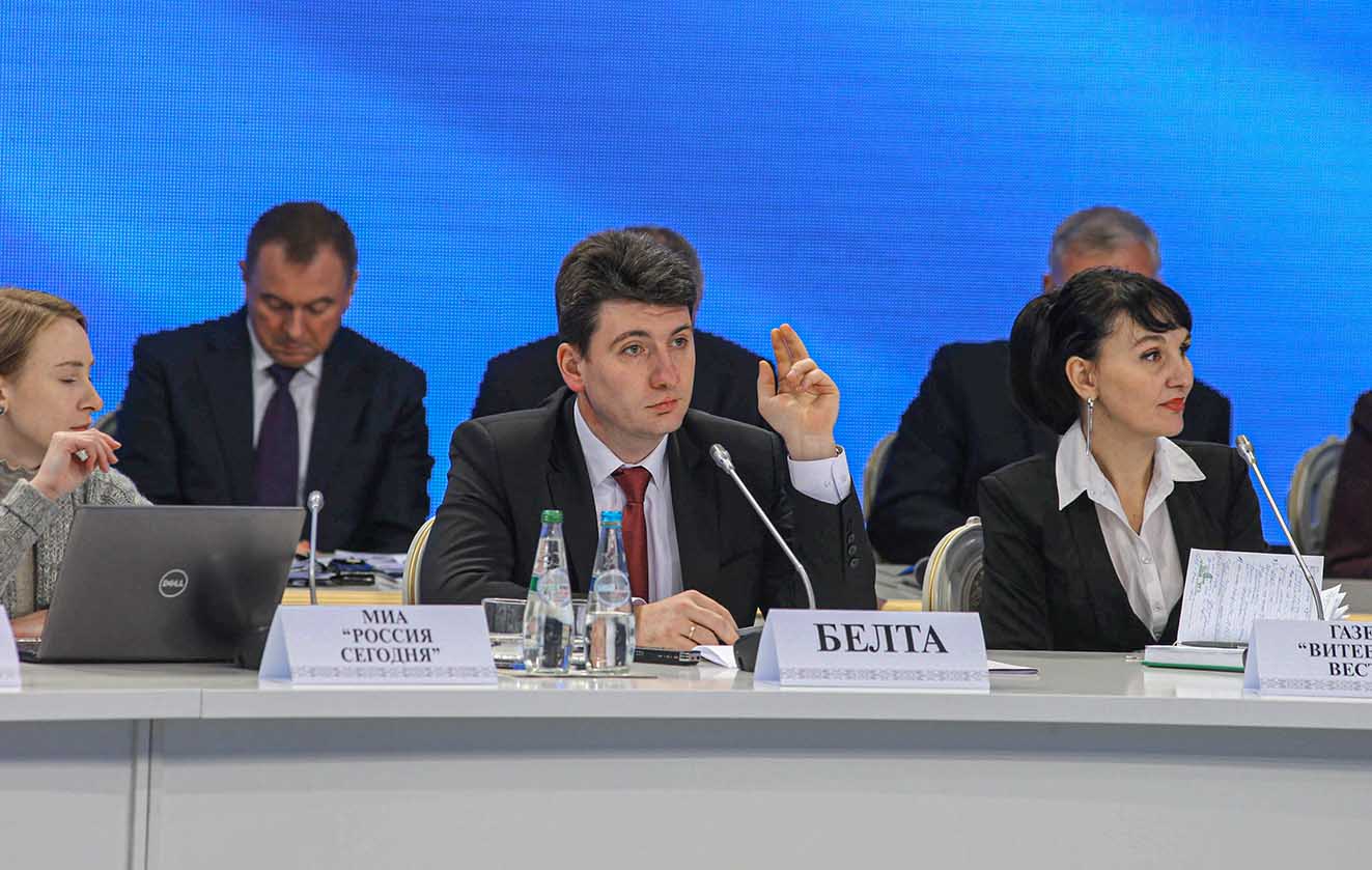 Журналісты ў час сустрэчы Прэзідэнта Рэспублікі Беларусь А. Р. Лукашэнкі з прадстаўнікамі грамадскасці, беларускіх і замежных СМІ. Мерапрыемства прайшло ў фармаце пад агульнай назвай «Вялікая размова з Прэзідэнтам». Студзень 2017 г.