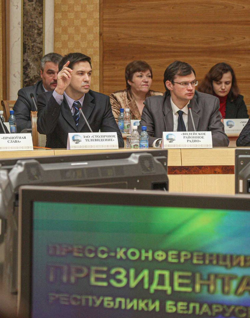 Журналісты на прэс-канферэнцыі Прэзідэнта Рэспублікі Беларусь А. Р. Лукашэнкі для цэнтральных і рэгіянальных сродкаў масавай інфармацыі Беларусі. 30 снежня 2009 г.