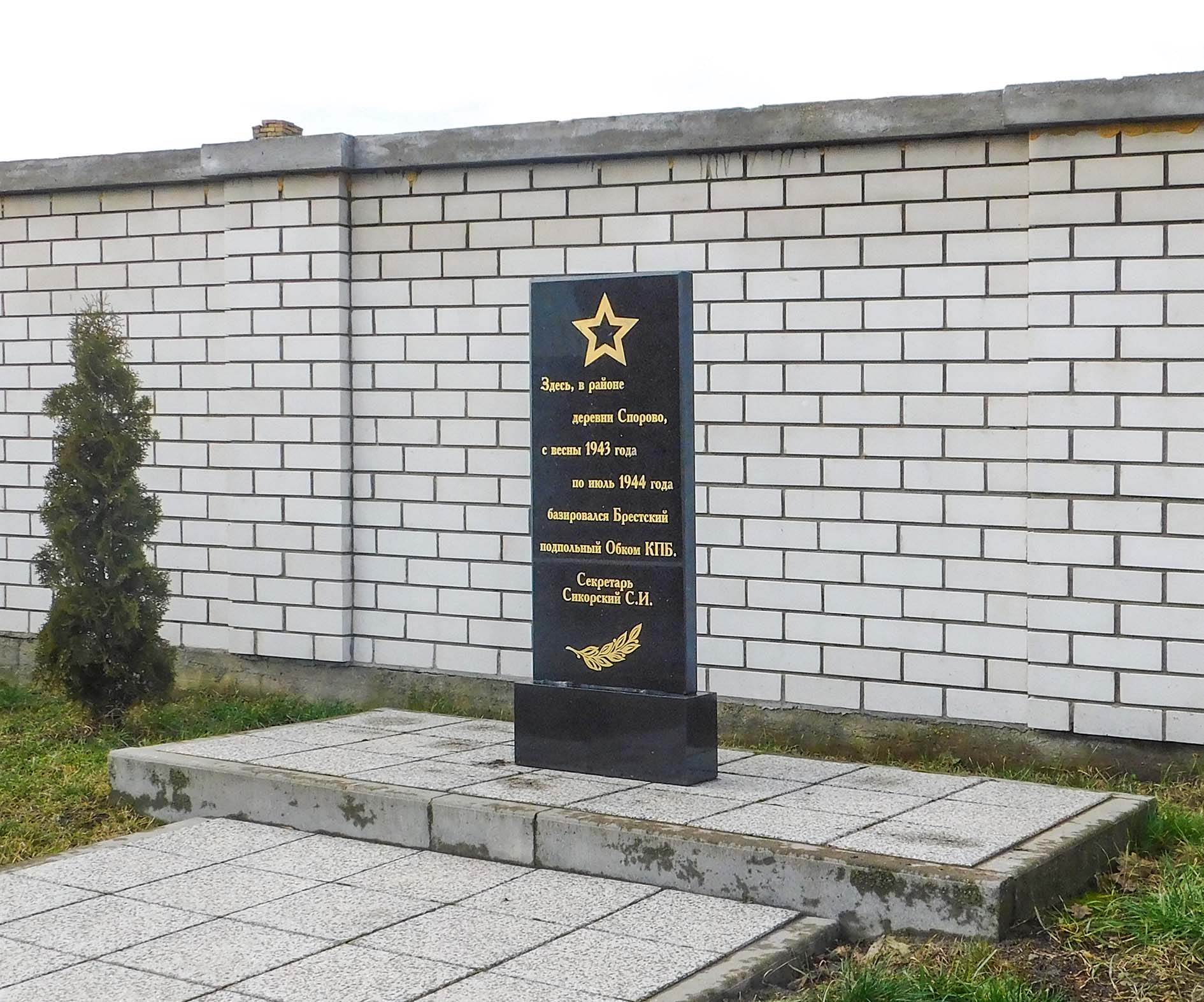 Памятная стэла ў гонар Брэсцкага падпольнага абкама КП(б)Б у вёсцы (цяпер аграгарадок) Спорава Бярозаўскага раёна Брэсцкай вобласці, у наваколлі якой абкам дыслацыраваўся ў 1943–1944 гг. у час Вялікай Айчыннай вайны.