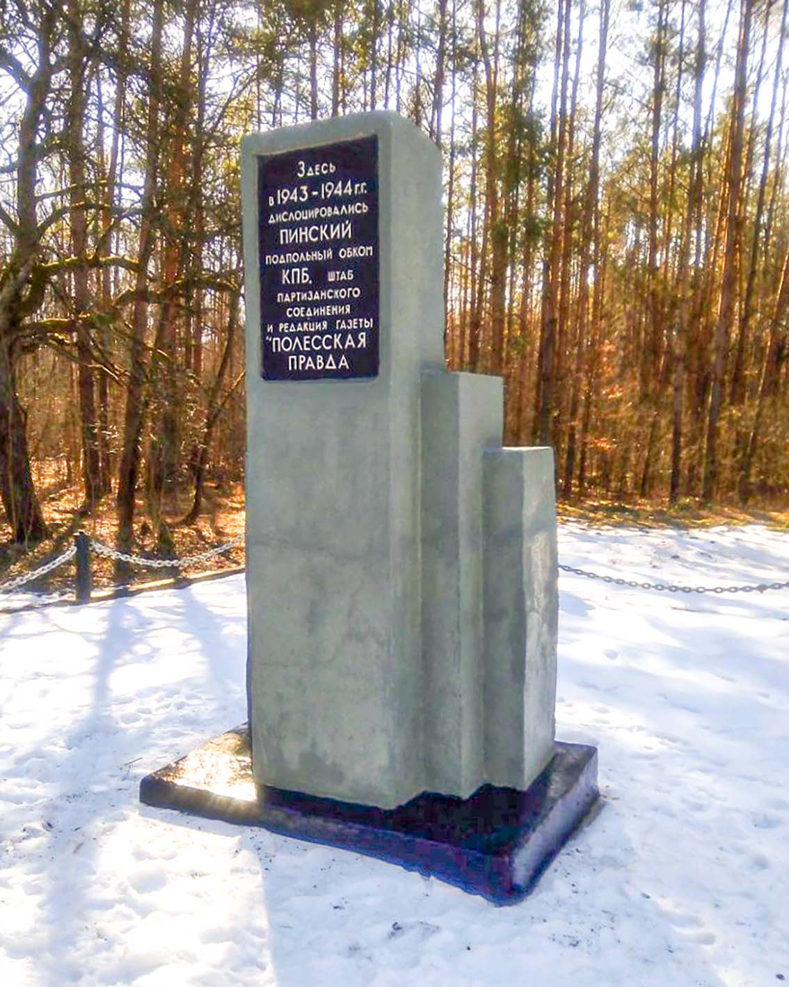 Помнік Мінскаму падпольнаму абкаму КП(б)Б на месцы яго дыслакацыі ў гады Вялікай Айчыннай вайны ў Любанскім раёне Мінскай вобласці. Мемарыяльны комплекс «Зыслаў».