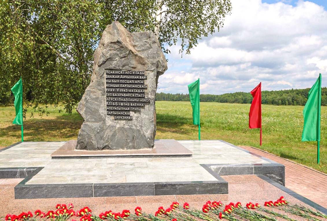 Помнік на месцы дыслакацыі Магілёўскага падпольнага абкама КП(б)Б у гады Вялікай Айчыннай вайны каля вёскі Усакіна Клічаўскага раёна Магілёўскай вобласці. Мемарыяльны комплекс «Усакіна».