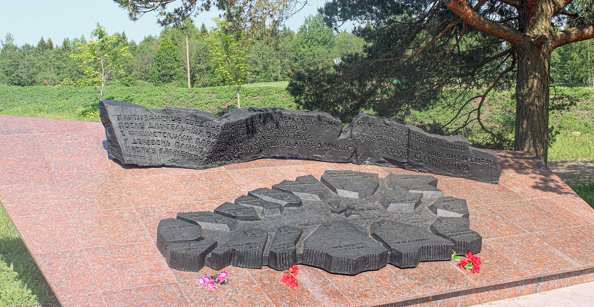 Скульптура Партызана ўзвышаецца над мемарыяльным полем — «Плошчай Памяці», направа ад яе знаходзіцца брацкая магіла, дзе пахавана 450 партызан і мірных жыхароў, якія загінулі падчас прарыву блакады. Іх імёны ўвекавечаны на 10 мемарыяльных плітах. На астатніх 28 мемарыяльных плітах увекавечана больш за 1,5 тыс. імёнаў партызан, якія загінулі ў час блакады з 11 красавіка па 5 мая 1944 г. Сярод пахаваных у брацкай магіле камісар партызанскай брыгады «За Савецкую Беларусь» (Віцебскай вобласці) М. Г. Жыжоў, камісар партызанскай брыгады імя В. I. Чапаева (Віцебскай вобласці) I. Ф. Каранеўскі. У 2023 г. на мемарыяле было ўвекавечана імя камандзіра партызанскай брыгады «За Савецкую Беларусь», Героя Савецкага Саюза П. М. Раманава. Каля манумента запалены Вечны агонь.
