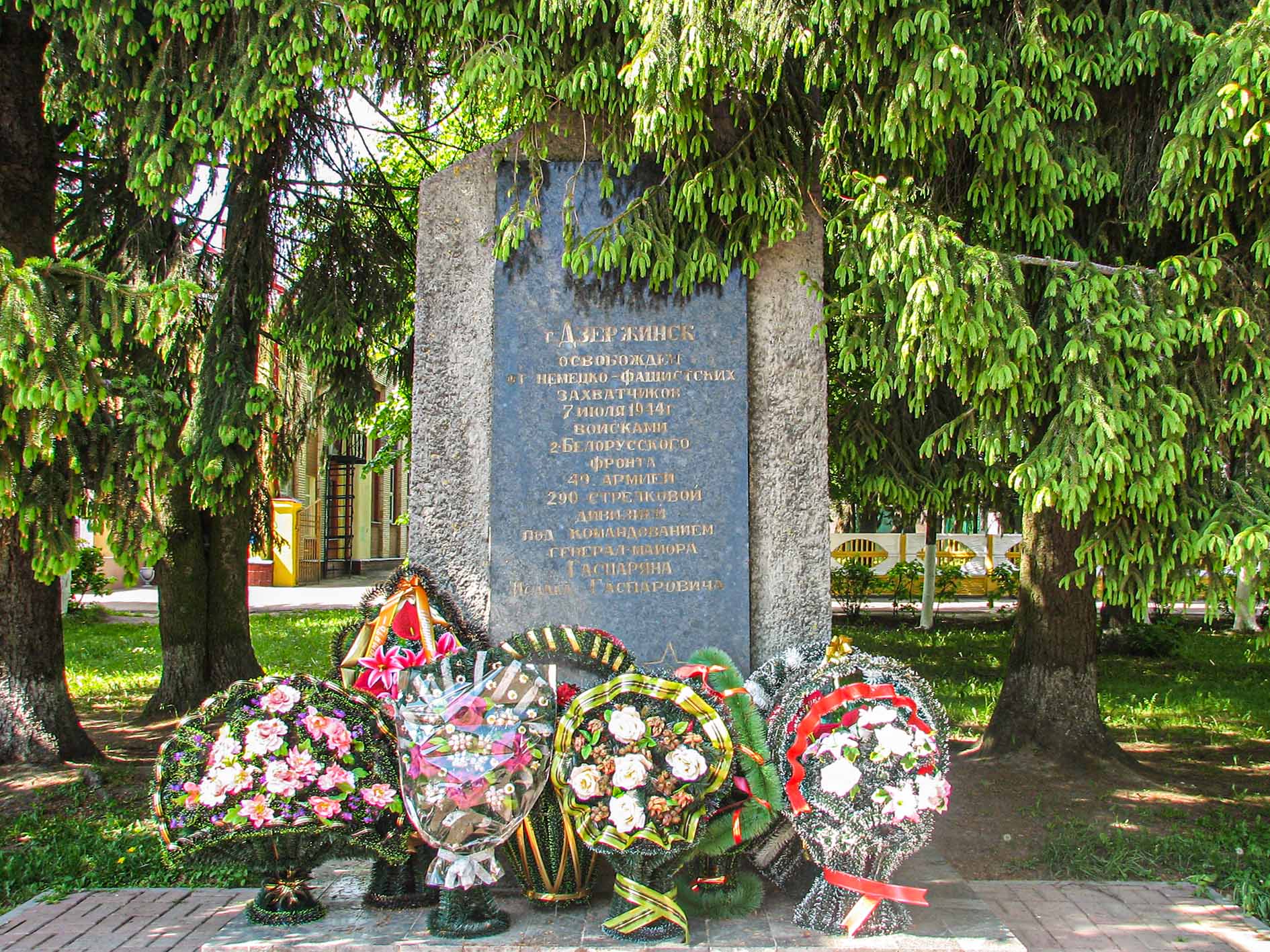 мемарыяльныя дошкі падпольшчыкам, 16‑му пагранічнаму атраду «Дзяржынскі», у гонар Герояў Савецкага Саюза — уражэнцаў Дзяржыншчыны.
