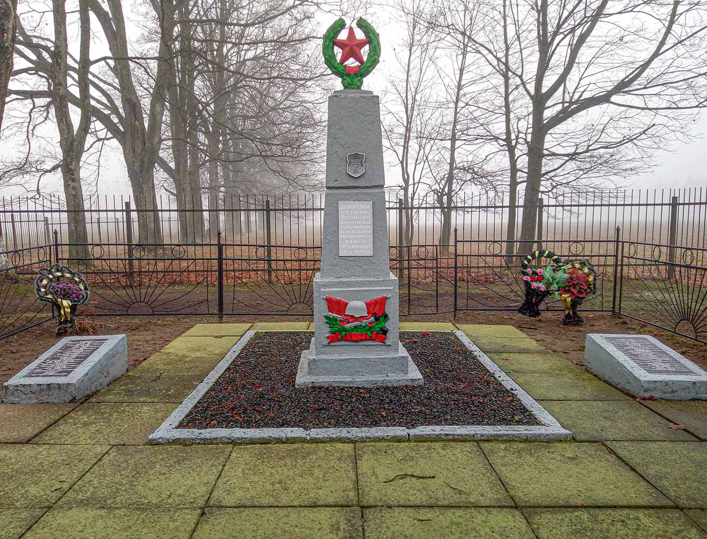 брацкія магілы савецкіх воінаў; савецкіх воінаў, партызан і ахвяр фашызму; магіла невядомага савецкага лётчыка, які загінуў у чэрвені 1941 г. у баі з нямецка-фашысцкімі захопнікамі; на магілах пастаўлены помнікі;