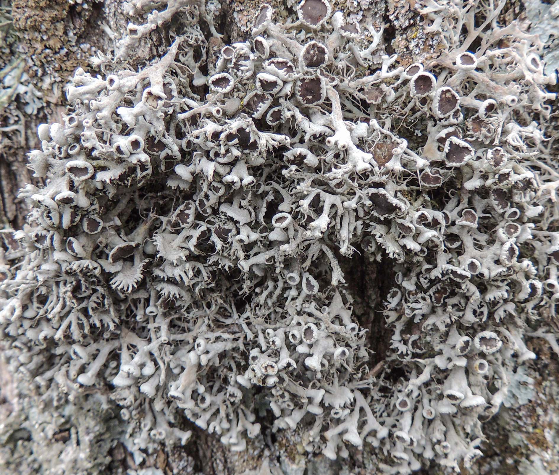 Талом кусцісты, з павісальнымі або адтапыранымі лопасцямі, утварае рыхлыя падушкі, ад дробных памераў 2–3 см да шырокіх распасцёртых падушак 20–30 см у дыяметры, без сарэдый і ізідый. Лопасці шырынёй 1–4 мм, маладыя — больш-менш пляскатыя і распасцёртыя, спелыя — выпуклыя, доўгія, павісальныя, моцна разгалінаваныя і пераблытаныя, па краі з доўгімі, да 6 мм, простымі або слаба разгалінаванымі фібрыламі (аднакаляровымі з таломам або часта больш цёмнымі), пры дапамозе якіх лішайнік прымацоўваецца да субстрату. Верхняя паверхня талома ад светла-шэрай да цёмна-шэра-бурай афарбоўкі, у зацяненні больш светлая, пры яркім асвятленні да цёмна-шэра-карычневай і чарнаватай. Паверхня талома і фібрылы варсістыя. Стрыжань рыхлы, белаваты. Ніжняя паверхня талома светлая, рызіны не развітыя. Апатэцыі сядзячыя або на кароткай ножцы, размяшчаюцца на паверхні лопасцей. Дыск карычневата-чорны, голы або з бялёса-блакітнаватым налётам, спачатку ўвагнуты, потым плоскі. Сумкі з 8 спорамі. Споры 2‑клетачныя, эліпсападобныя, карычневыя.