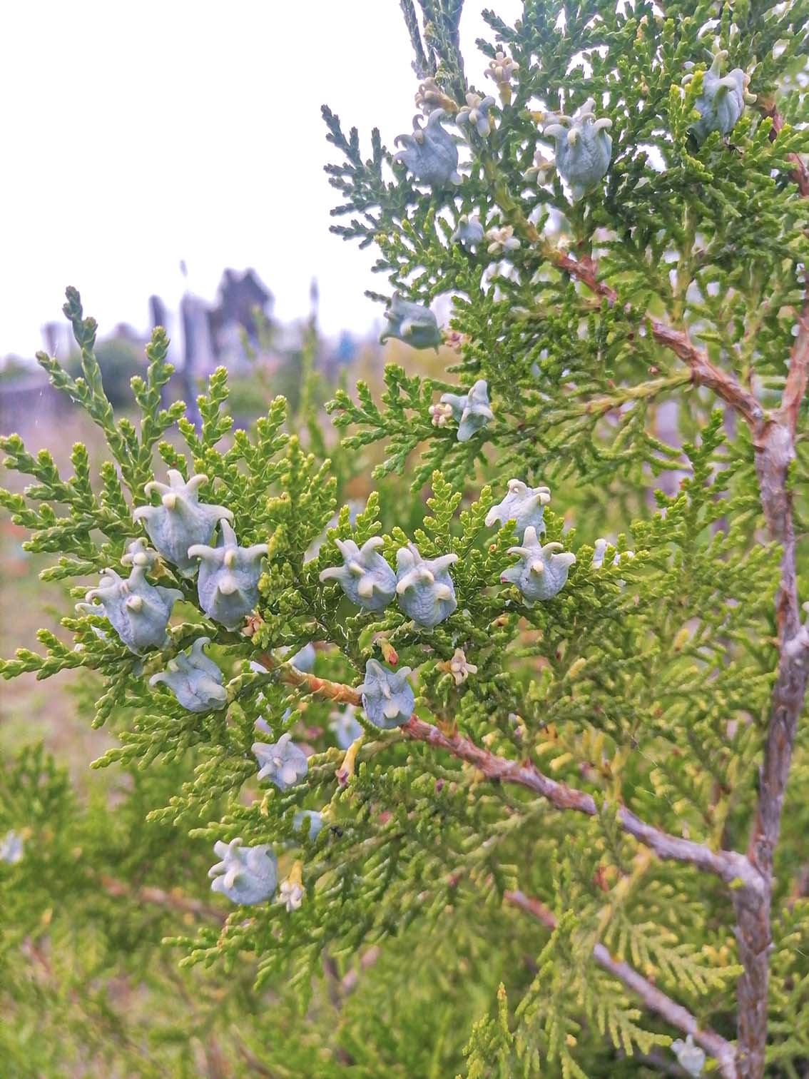 Вечназялёныя аднадомныя кусты або дрэвы вышынёй да 25 м і дыяметрам ствала да 1 м. Максімальная працягласць жыцця да 1000 гадоў. Каранёвая сістэма добра развіта. Крона густая, пірамідальная або яйцападобная. Парасткі падоўжаныя, пляскатыя, размешчаны ў вертыкальнай плоскасці. Лісце накрыж супраціўнае, простае, суцэльнае, суцэльнакраёвае, лускападобнае, да 15 мм даўжынёй. Ювенільнае лісце часам іголкападобнае. Пыленне ў красавіку — маі. Мужчынскія шышкі дробныя, шарападобныя, 2–3 мм у дыяметры, чырванаватыя. Спелыя жаночыя шышкі даўгавата-яйцападобныя, 15–25 мм даўжынёй, з 3–4 парамі пляскатых супраціўных лускавінак, прамастаячыя, спачатку зялёныя, крыху мясістыя, з шызым налётам, пры выспяванні бурыя, спеюць восенню ў год апылення. Пасля выспявання ападаюць цалкам. Насенныя лускавінкі загнутыя кручком на самым версе. Насенне матавае, бяскрылае.