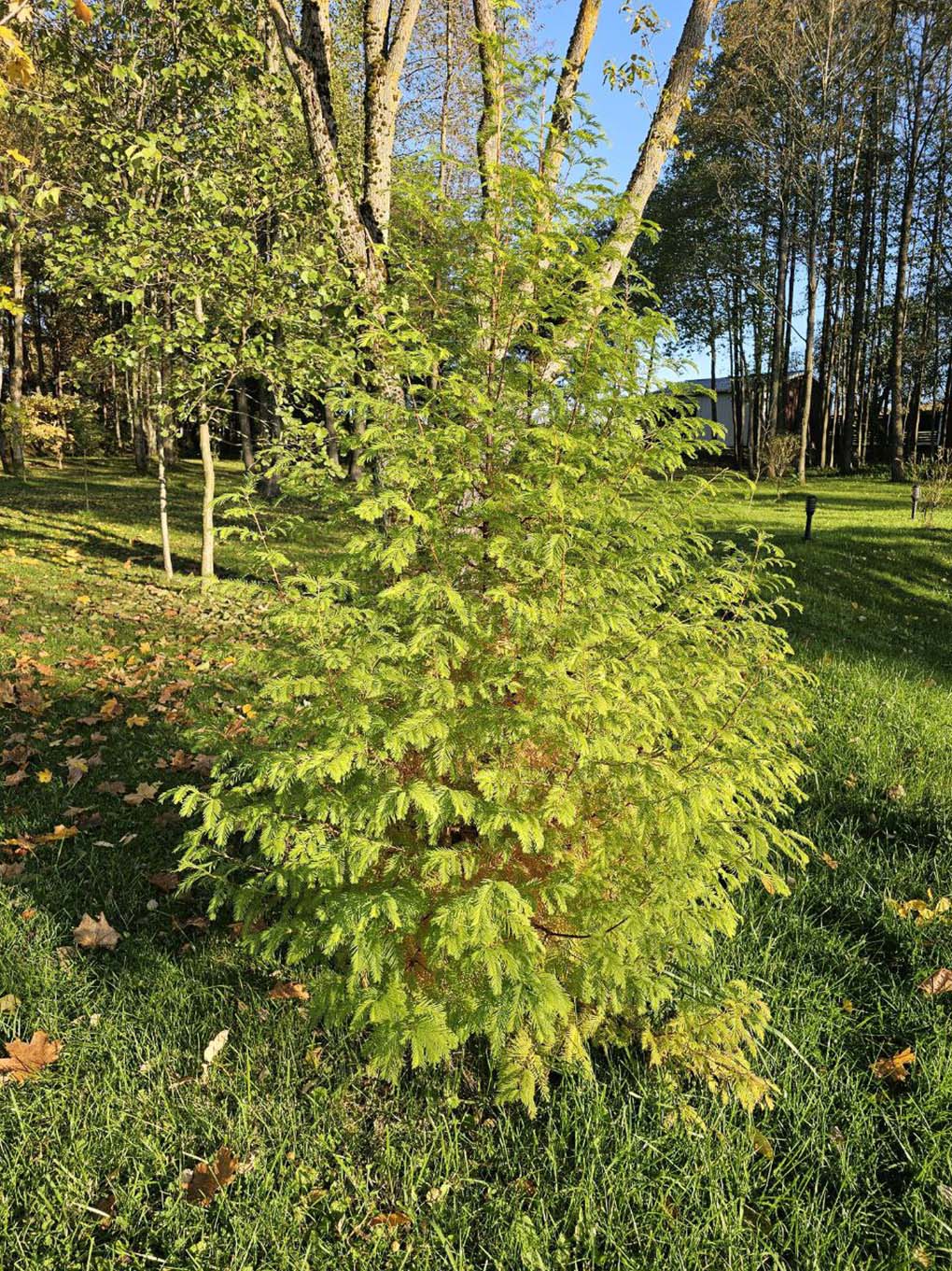 Буйныя лістападныя (галінападныя) аднадомныя дрэвы вышынёй да 40 (45) м і дыяметрам ствала да 2,5 м. Працягласць жыцця да 300–450 (600) гадоў. Крона рыхлая, канічная, часта мнагаствольная. Парасткі падоўжаныя і пакарочаныя. Пакарочаныя парасткі да 8 см даўжынёй, плоскія. Лісце супраціўнае, простае, суцэльнае, суцэльнакраёвае, лінейнае, даўжынёй да 2,5 см, мяккае, жаўцее і ападае восенню разам з пакарочаным парасткам. Пыленне ў сакавіку — красавіку да распускання лісця. Мужчынскія шышкі дробныя, прадаўгаватыя, да 3–6 мм у даўжыню, жаўтаватыя, сабраны ў мяцёлкападобныя або гронкападобныя зборы. Спелыя жаночыя шышкі адзінкавыя, акруглыя, да 25 мм у дыяметры, з 8–14 парамі супраціўных лускавінак, спачатку зялёныя, крыху мясістыя, з шызым налётам, пры выспяванні бурыя, на доўгіх паніклых ножках, спеюць восенню ў год апылення. Пасля выспявання ападаюць цалкам. Насенне плоскае, крылатае.