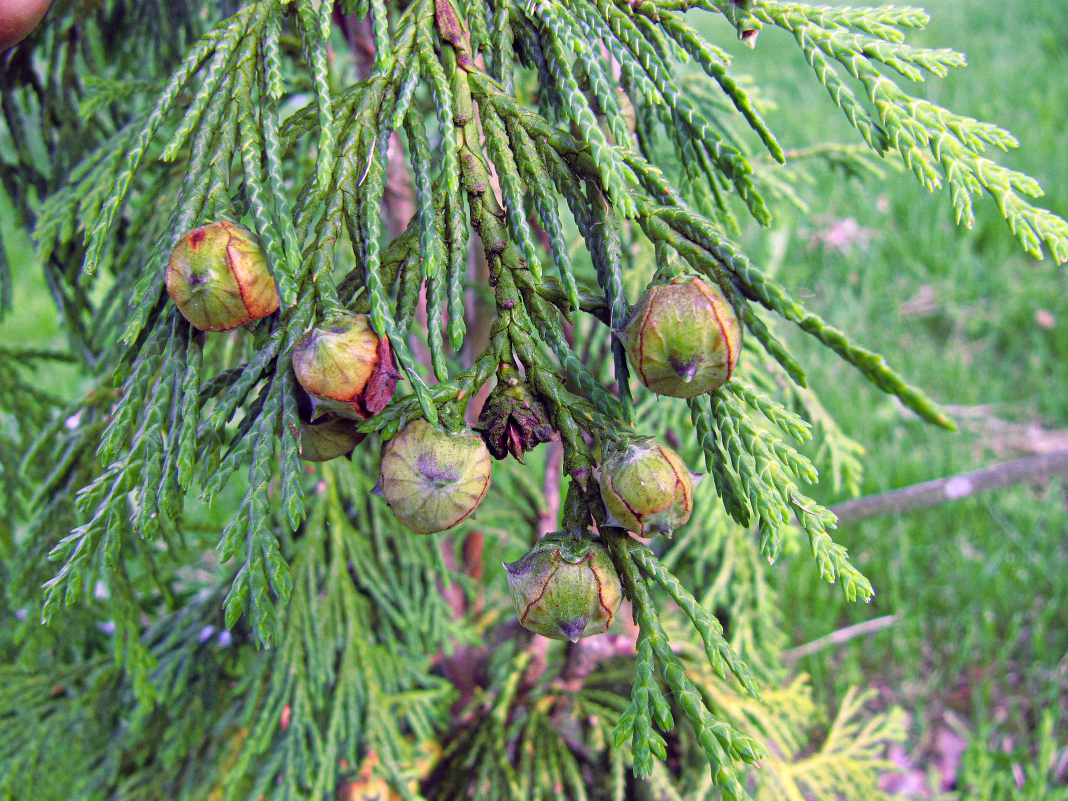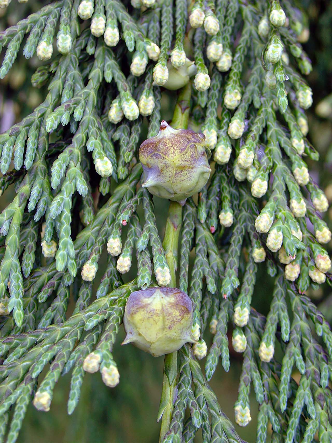 Вечназялёнае аднадомнае дрэва вышынёй да 40 (60) м і дыяметрам ствала да 2 (4) м. Працягласць жыцця складае да 1500 і больш гадоў. Каранёвая сістэма добра развітая. Крона конусападобная або пірамідальная, звычайна з паніклай верхавінай і бакавымі парасткамі. Парасткі падоўжаныя, пляскатыя. Лісце накрыж супраціўнае, простае, суцэльнае, суцэльнакраёвае, даўжынёй да 2,5 мм; дарослае лісце лускападобнае, ювенільнае — часта іголкападобнае. Пыленне ў красавіку — маі. Мужчынскія шышкі дробныя, прадаўгаватыя, даўжынёй 2–5 мм, жаўтаватыя. Спелыя жаночыя шышкі акруглыя, дыяметрам 8–12 мм, з 2–3 (4) парамі шчытападобных супраціўных лускавінак, спачатку зялёных з шызым налётам, пры выспяванні бурых, з невялікай нарасцю ў цэнтральнай частцы; спеюць звычайна на 2‑і год пасля апылення. Пасля выспявання ападаюць цалкам. Насенне пляскатае, з двума крыламі.