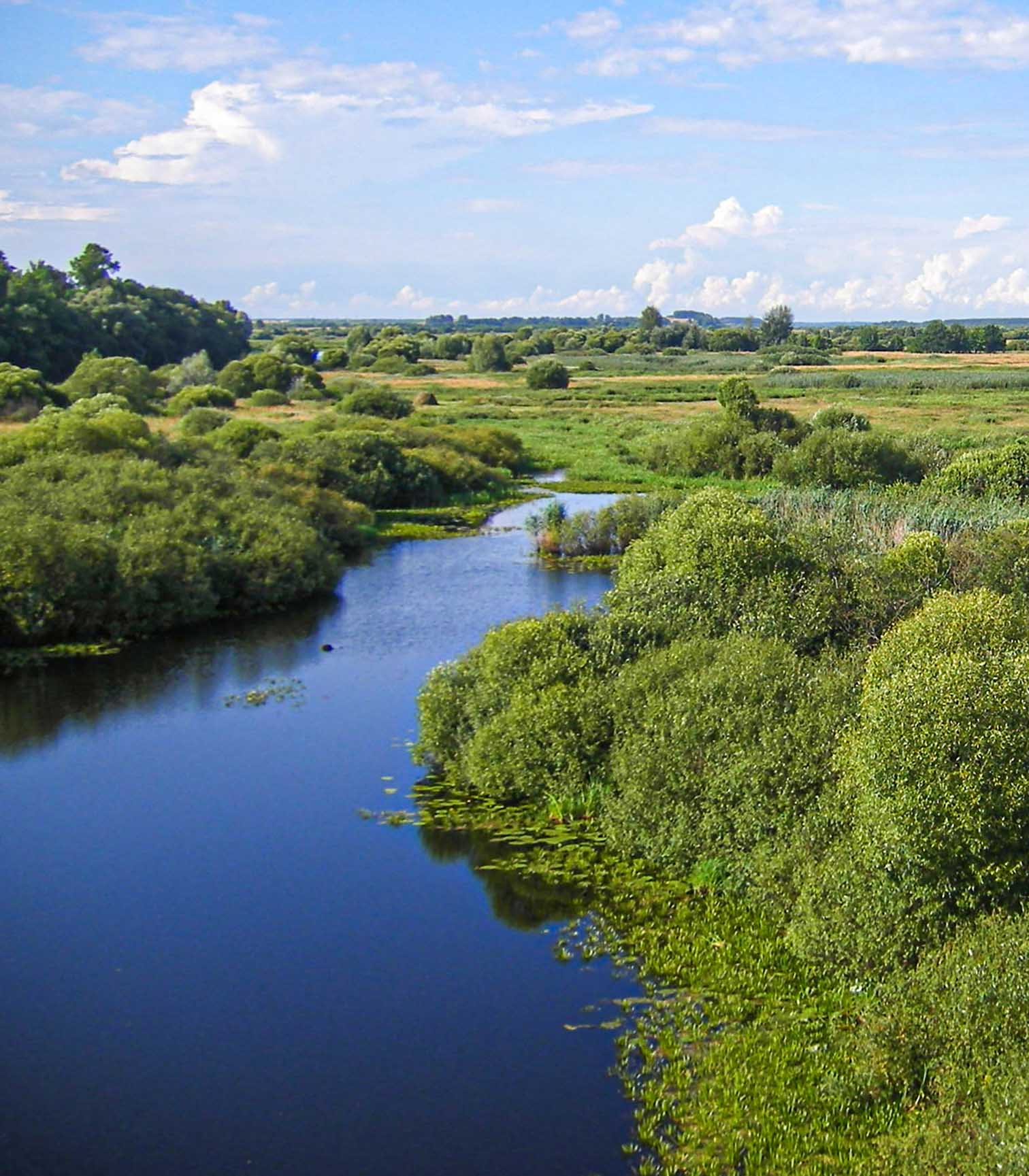 Пойма пераважна двухбаковая, лугавая, парэзаная прытокамі, рукавамі, старыцамі; шырынёй у вярхоўі 0,1–0,8 км, у ніжнім цячэнні 0,5–1,5 км. У разводдзе затапляецца на глыбіню 0,5–2,5 м да 20–30 сутак.