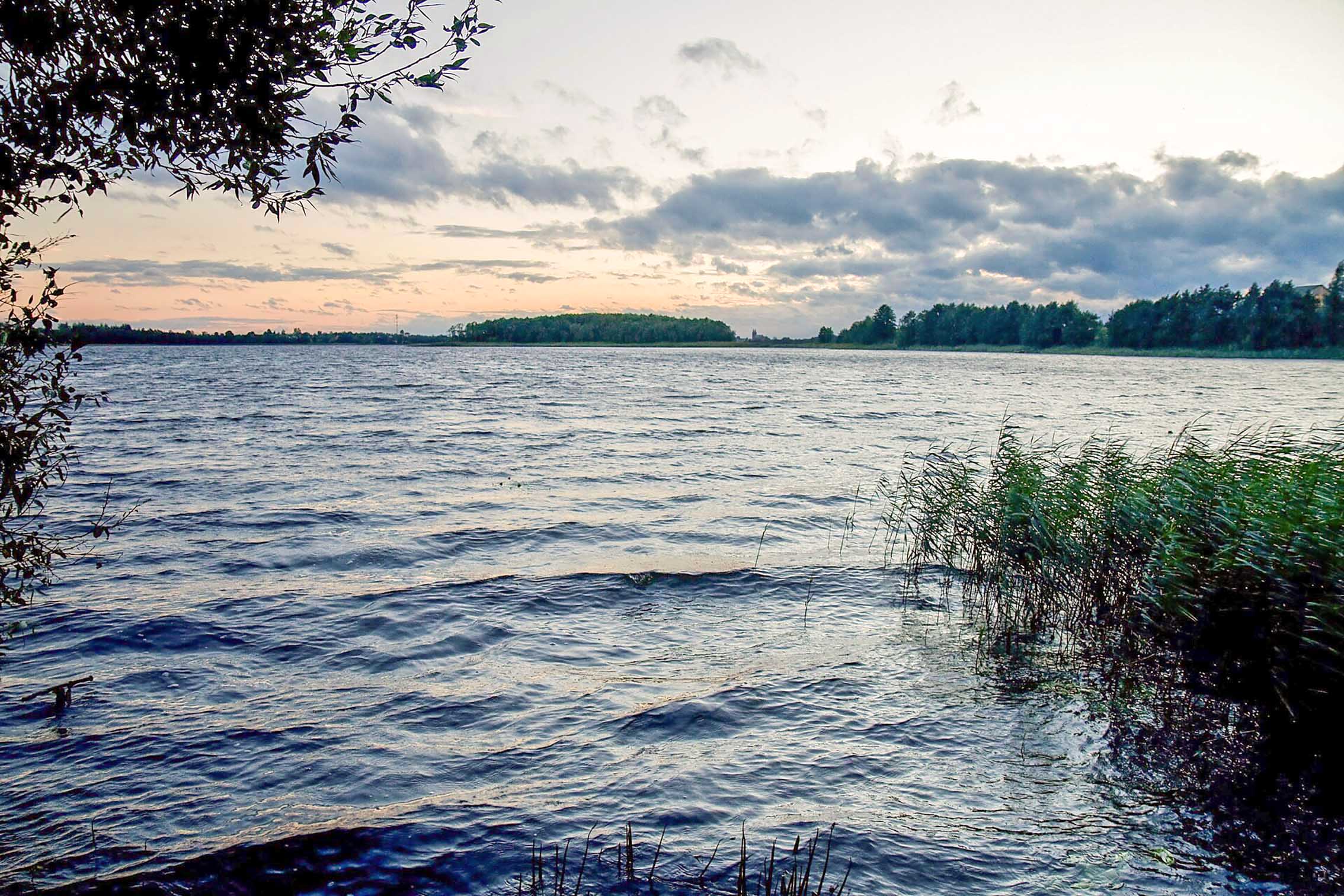 Берагі нізкія, часам абразійныя, пад хмызняком; у паўночна-заходнім заліве багністыя, зарослыя балотнай расліннасцю (дрыгва, сплавіна).