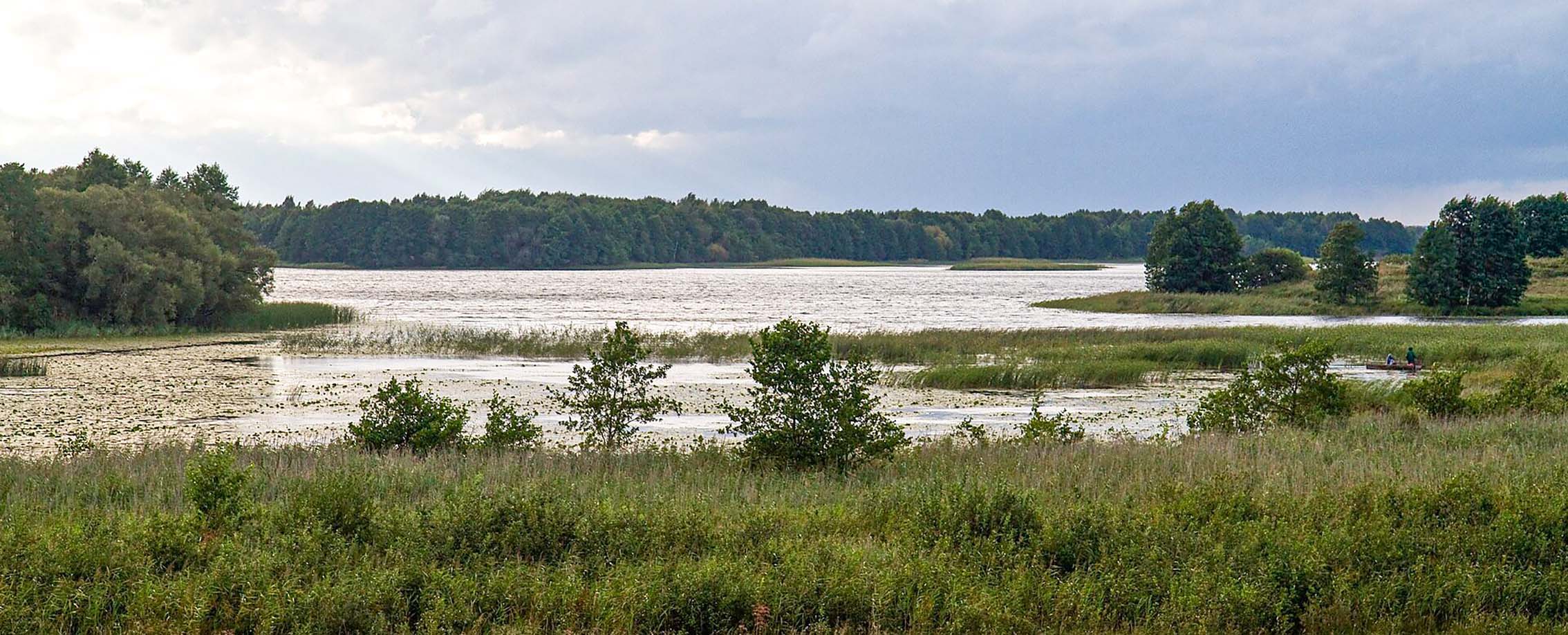 Уздоўж берагоў паласа надводнай расліннасці шырынёй да 160 м.
