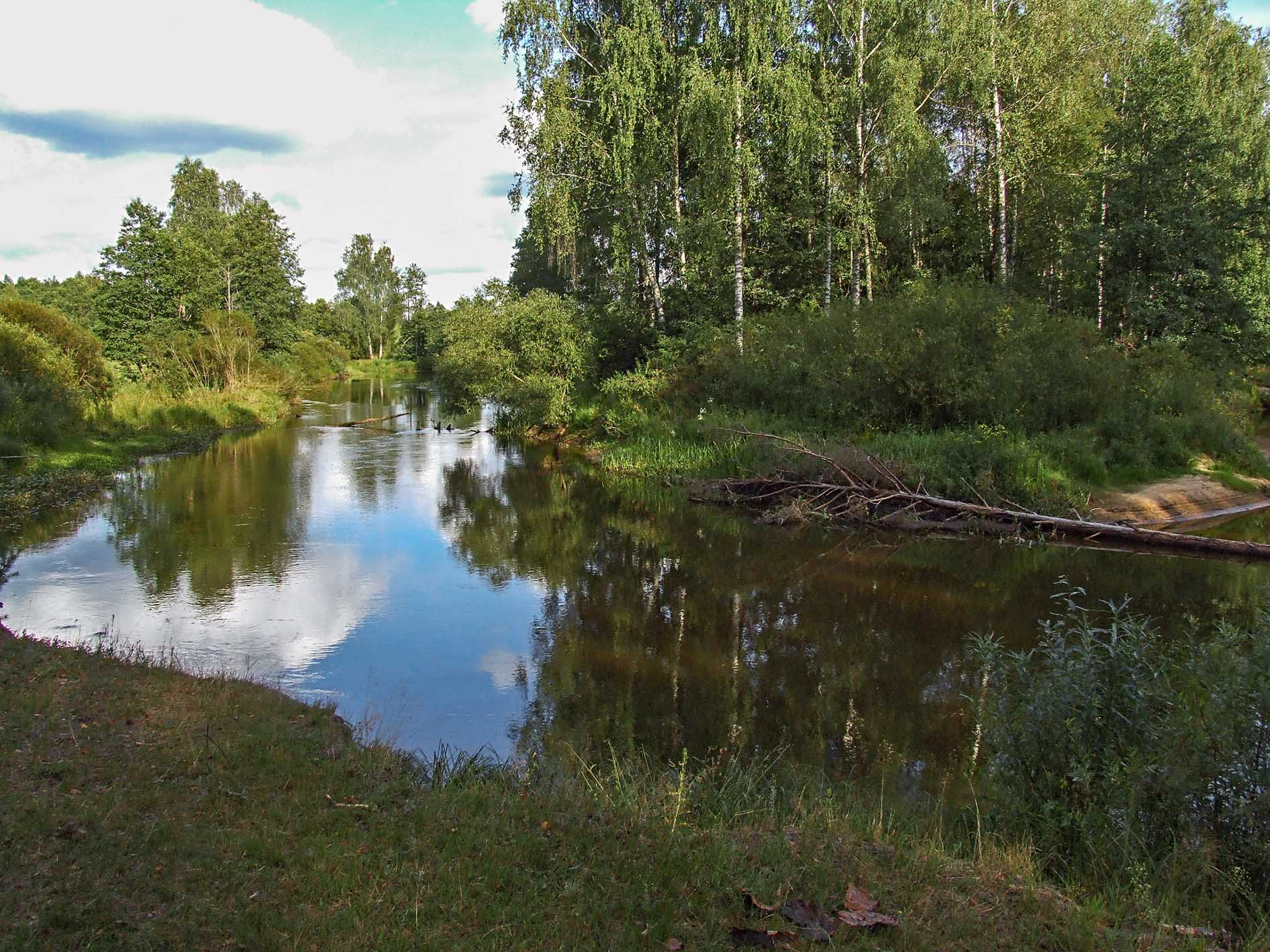 У верхнім цячэнні даліна амаль на ўсім працягу зліваецца з прылеглай багністай лясістай мясцовасцю. Пойма забалочаная, шырыня да 3 км (у асобных месцах 0,5–6 км). Падчас разводдзя затапляецца на глыбіню да 1,8 м, зрэдку да 3 м. Рэчышча моцназвілістае, шырыня 15–20 м, месцамі да 60 м, шмат праток і невялікіх пясчаных астравоў (выспаў). Берагі вышынёй 0,5–1,5 м, пясчаныя, забалочаныя, на асобных участках стромкія.