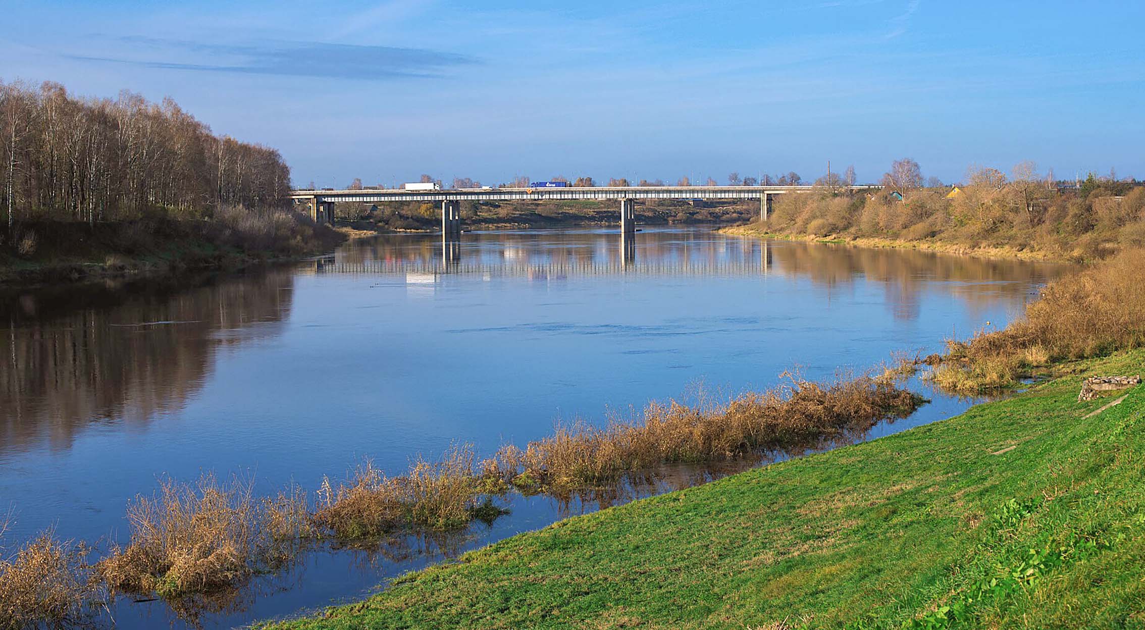Рэчышча звілістае, характэрныя перакаты, выспы, парогі, зарастае, як правіла, каля берагоў. Шырыня рэчышча да вусця Улы 60–120 м, радзей да 190 м, каля мяжы з Латвіяй 100–140 м, дзе-нідзе да 240 м.